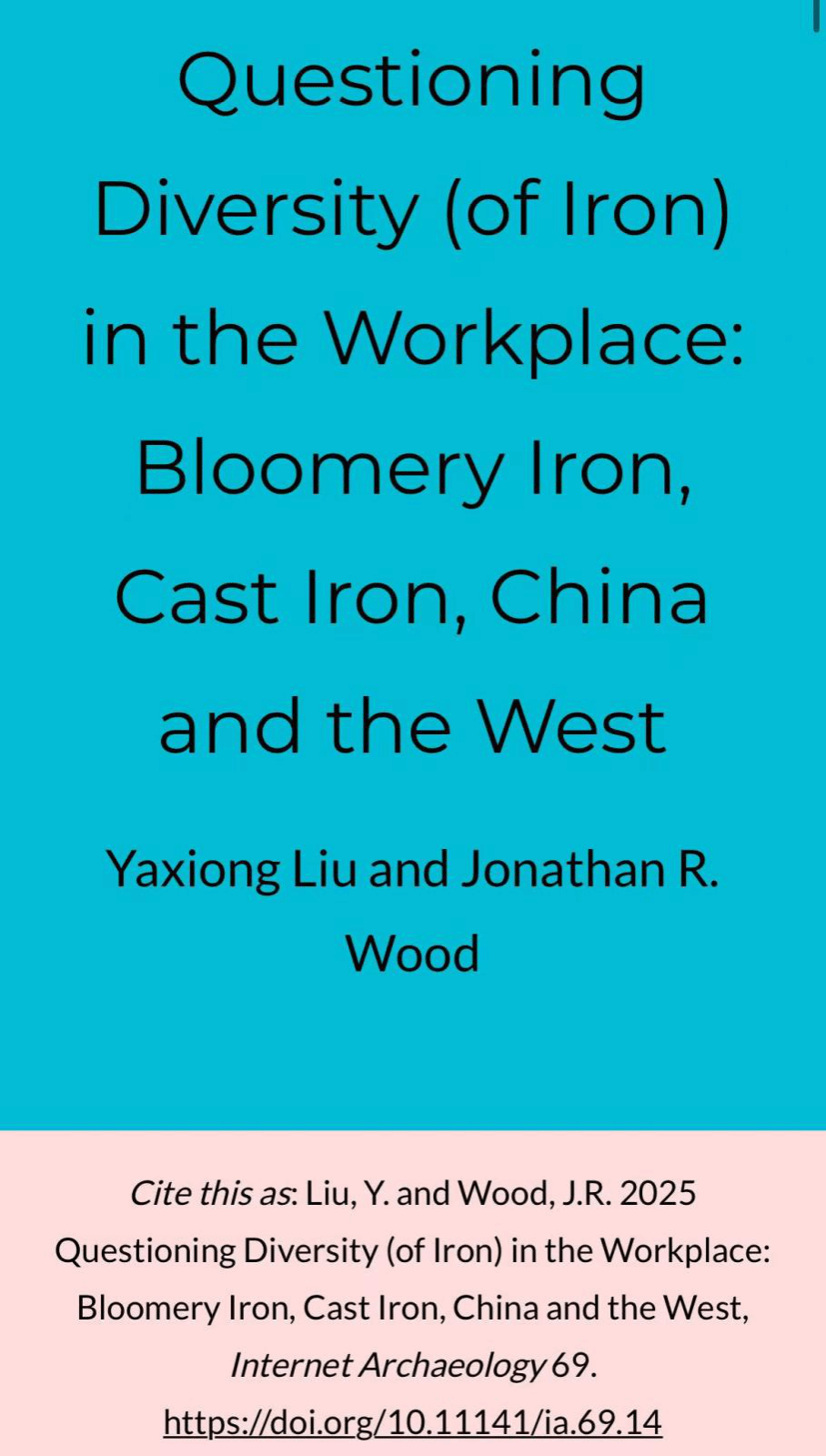近日,由我们青年教师刘亚雄与外籍教师Jonathan R. Wood合作研究的成果在Internet Archaeology期刊上发表。该研究对中西方铁器时代的发展差异提出了新的解读:中国比西方早约2000年掌握铸铁技术的关键原因,并非由于技术能力的优越,而是由各自的社会政治环境及应用需求所驱动。
