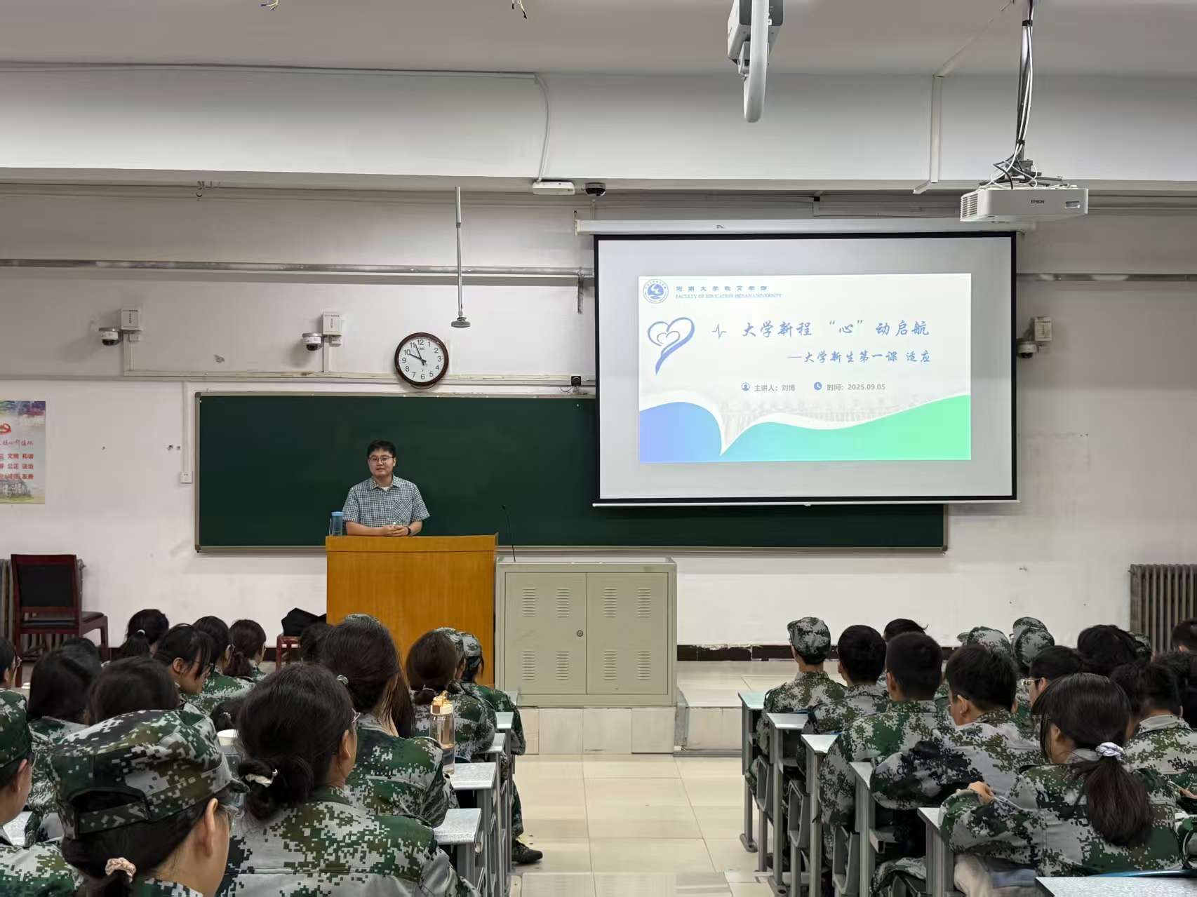 随后,学院邀请伟德国际官网教育学部刘博老师为新生开展“大学新程‘心’动启航”心理健康主题报告。结合大学新生常见的心理适应问题,刘博讲解了情绪管理、压力应对、人际交往以及自我认知等多方面内容,引导同学们关注自身心理健康,掌握心理调适的基本方法,有效增强了新生的心理韧性与适应能力。